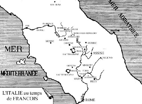 Le jeune François Bernardone vivra tous ces événements. François a 16 ans lorsque les habitants d'Assise assiègent et détruisent la forteresse féodale et impériale qui domine la ville. La commune est proclamée lorsqu'il a 18 ans. A 20 ans, il part en guerre, avec beaucoup d'autres compagnons, contre Pérouse, la ville voisine distante de vingt kilomètres d'Assise. Il y sera d'ailleurs fait prisonnier et sa détention durera un an.