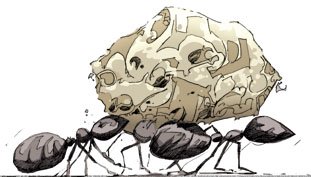 Nous pouvons dire que la fraternité a pour objet l'accomplissement en commun du salut de tous * Ut salvi essent in idipsum : une des formules-types de l’idéal franciscain, une de celles qui expriment avec le plus de concision que, si les chrétiens sont frères, la vie chrétienne est une vie en fraternité.. C'est l'image de nos soeurs les fourmis. Regardons les dans l'un des épisodes de leur tâche quotidienne : l'une d'elle découvre un morceau de pain qu'un homme a laissé tomber là en prenant son repas. Ce morceau de pain est 500 fois plus gros qu'elle ; elle est incapable de le transporter toute seule à ses soeurs pour qui ce sera pourtant l'objet de réjouissance. Alors elle court avertir ses soeurs : « Venez vite. J'ai découvert un énorme bout de pain à quelques pas d'ici. Allons vite avant qu'un oiseau ne s'en empare ». Et les voici parties. A plusieurs, et au risque de se casser les pattes, elles soulèvent cette nourriture et la rapprochent de la fourmilière. Après de multiples efforts, elles arrivent enfin. Mais le travail n'est pas terminé pour autant. D'autres viennent les aider pour découper en minuscules petites miettes et transporter dans les galeries la nourriture qui servira pour toutes. Voici l'exemple que nous donnent nos soeurs les fourmis de ce qu'est une fraternité : accomplir en commun le salut de tous. Evidemment, ce salut de tous ne se limite pas, comme dans l'exemple des fourmis, au côté matériel de la nature (même s'il en fait partie). Cet accomplissement en commun du salut de tous concerne le côté spirituel de l'être : son âme.
